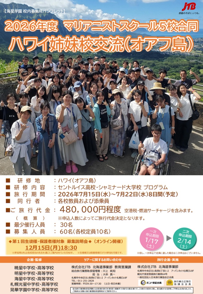 学園の校訓「神愛・人間愛」をベースに、 生徒たちの豊かな人間性と確かな学力、考える力を育みます。