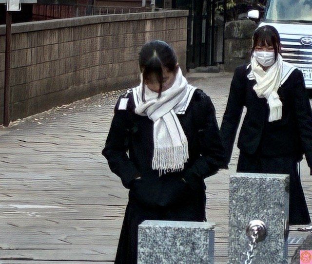 凍てつく寒さの中でも、それぞれのオシャレを楽しみながら元気に登校する姿に心が和みます。