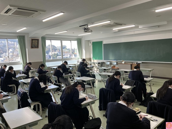 一方で、校内にはもう一つの「今」があります。 目前に迫った大学前期試験に向けて、静かに、しかし懸命に自習に取り組む高校3年生たちの姿です。