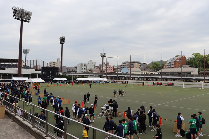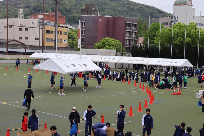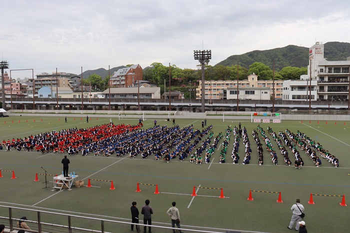 体育祭本番に向けた予行練習が、松山サッカー・ラグビー場で実施されました。