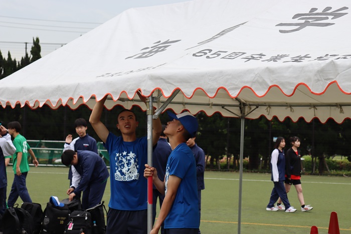海星の体育祭では、主に部活動生の生徒たちが、朝の準備から運営まで、幅広く業務にあたっています。
