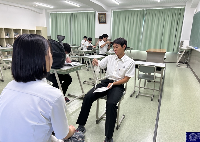 受験を目前に控えた生徒の面接練習に、担任の先生からの最終アドバイス。教室内では、順番を待つ生徒が、生徒同士で面接練習。