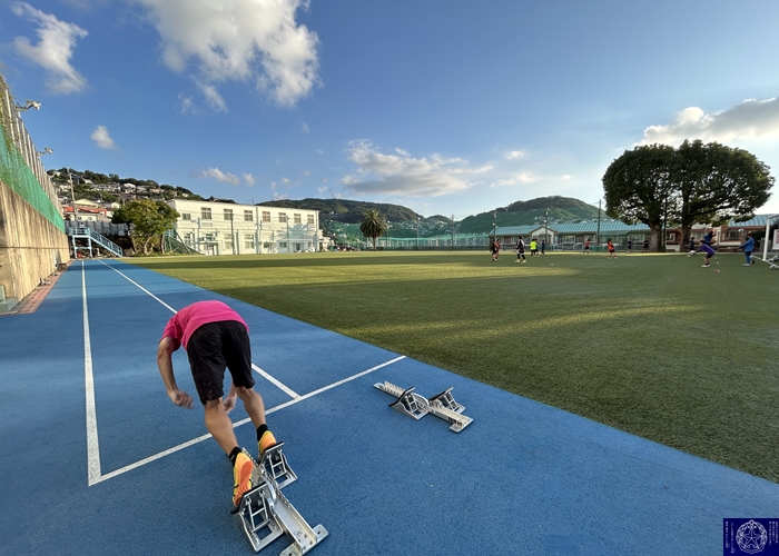 「種目は100メートルです!」集中力を高めて、スタートラインに立って。秋の大会で良い結果を…そんな願いを背中におくります。