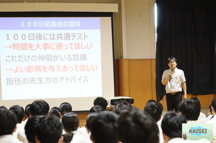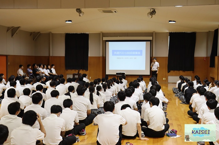 先日高校3年生の共通テスト受験者を対象に、100日前集会が開催されました。