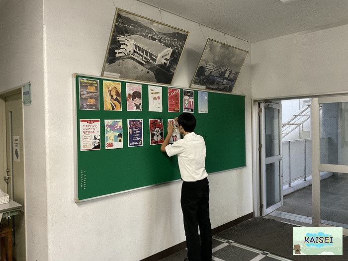 廊下では、黙々と模擬店ポスターを貼る、新生徒会長の久保田君の姿がありました。