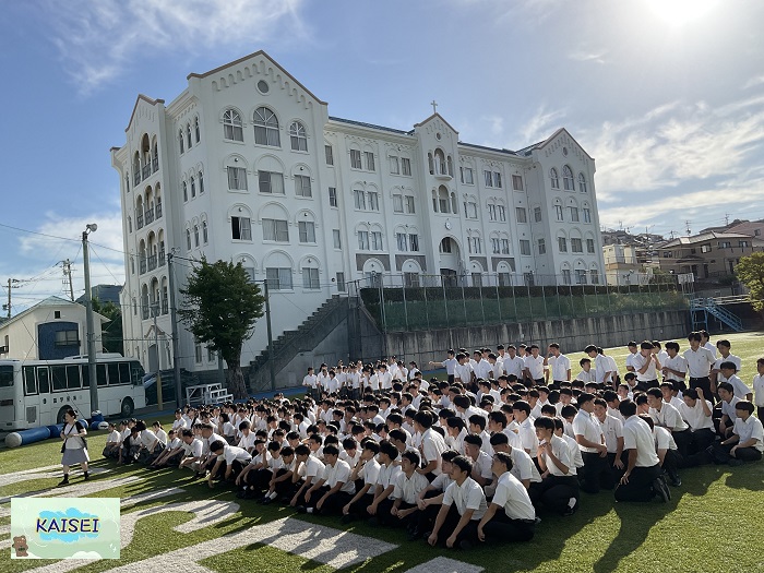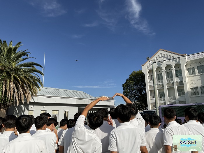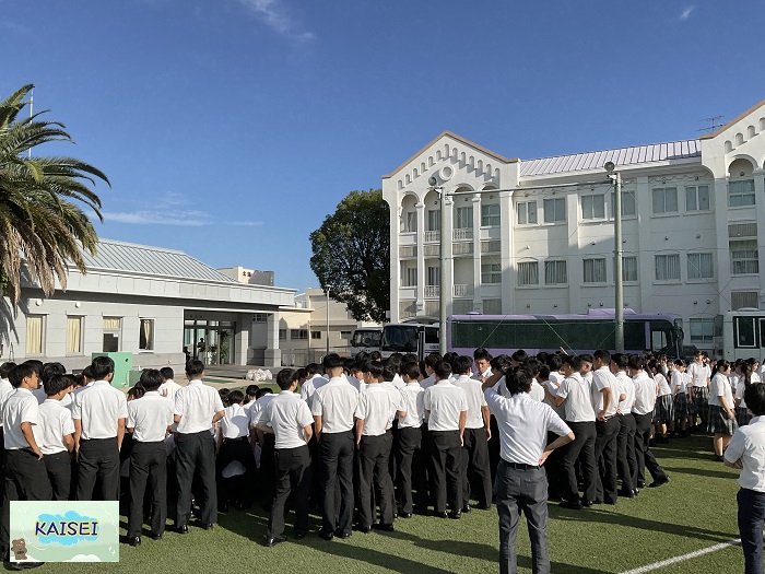 先日高校3年生は、卒業アルバム用の全体写真の撮影のため、上グラウンドに集合しました。