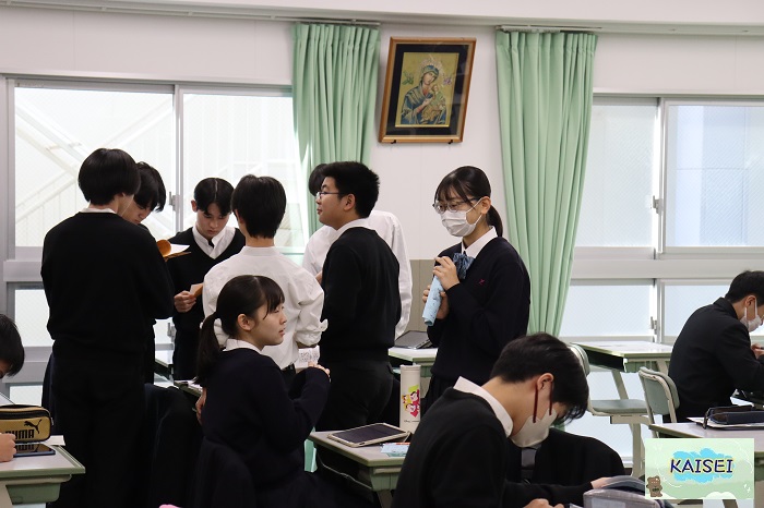 先週のホームルームの時間に2年生の教室にお邪魔したところ、生徒たちの楽しそうな声が聞こえてきました。