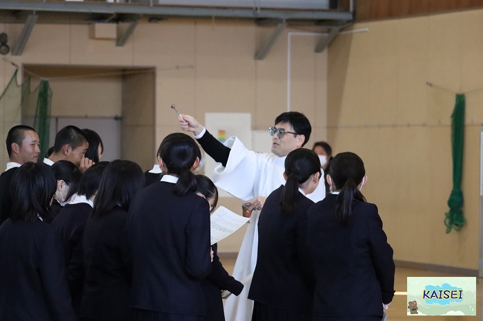 また出発前には、安全祈願が宗教講話の後に行われました。