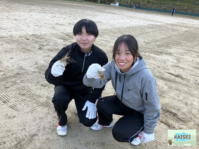 本川「大山グラウンドには初めて行ったのですが、草取りなどこまめにやらないとすぐに生えてきてしまうので、大変だなと感じました。野球部の人たちは耕し慣れていてすごいなと思いました。笑」