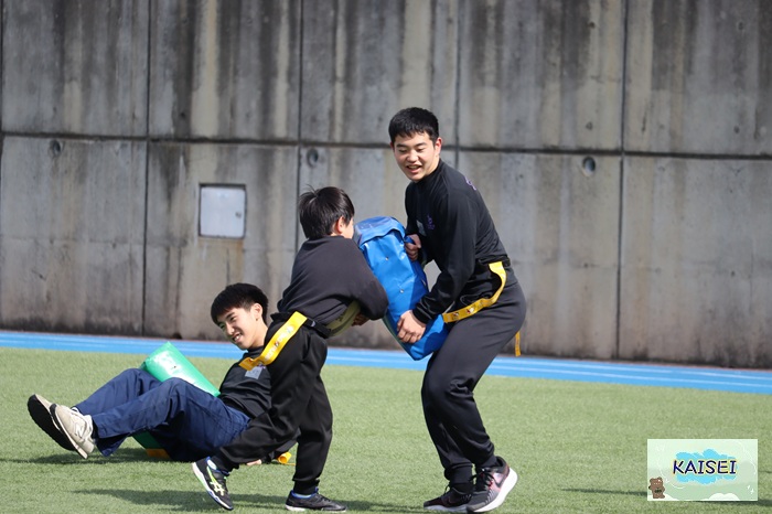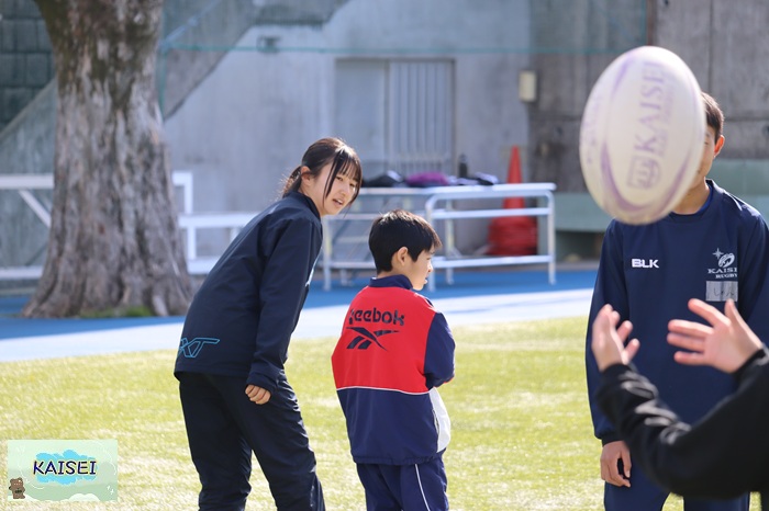高校生のお兄さん、お姉さんと一緒にプレーすることで、小学生にとっていい経験となりますが、海星の生徒にとってもすごく成長の機会になります。