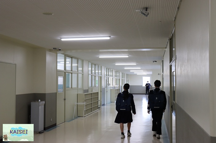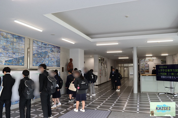 入試以来の海星高校の校舎、仮クラスに移動し、学力試験を受験します。